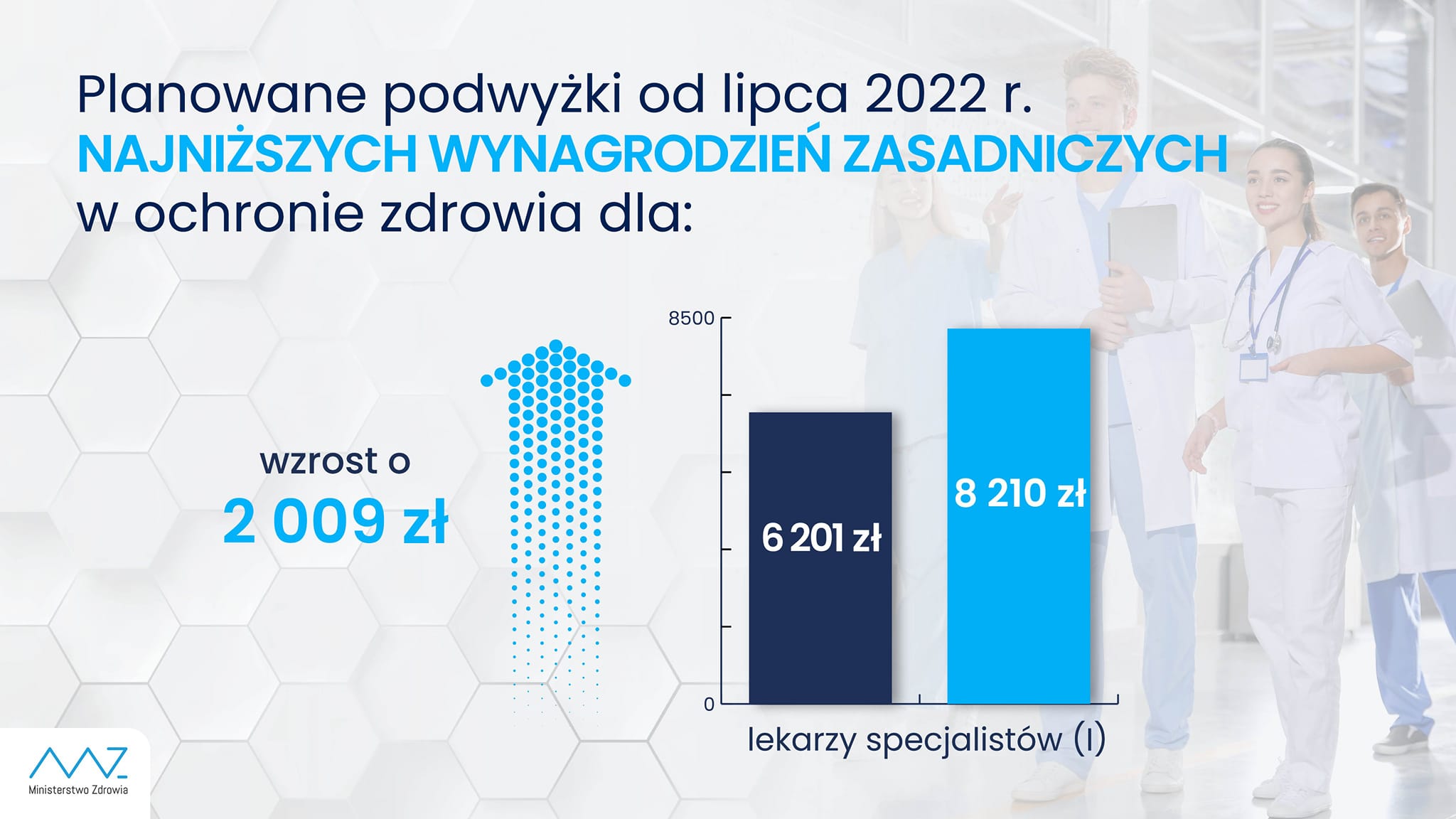 - Wzrost płac przewidziany jest na lipiec 2022 r. Podwyżki będą m.in. dla lekarzy, pielęgniarek, ratowników medycznych, diagnostów, fizjoterapeutów czy pracowników niemedycznych