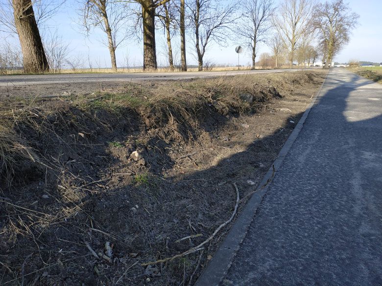 Dodatkowo jadąc drogą powiatową nr 1021P pomiędzy Złotowem a Nowy Dworem jest odcinek pobocza drogi sąsiadujący z ciągiem pieszo-rowerowym zakończony pionową skarpą o wysokości ok 60cm! Stwarza to realne zagrożenie dla użytkowników ciągu pieszo-rowerowego jak i użytkowników drogi.